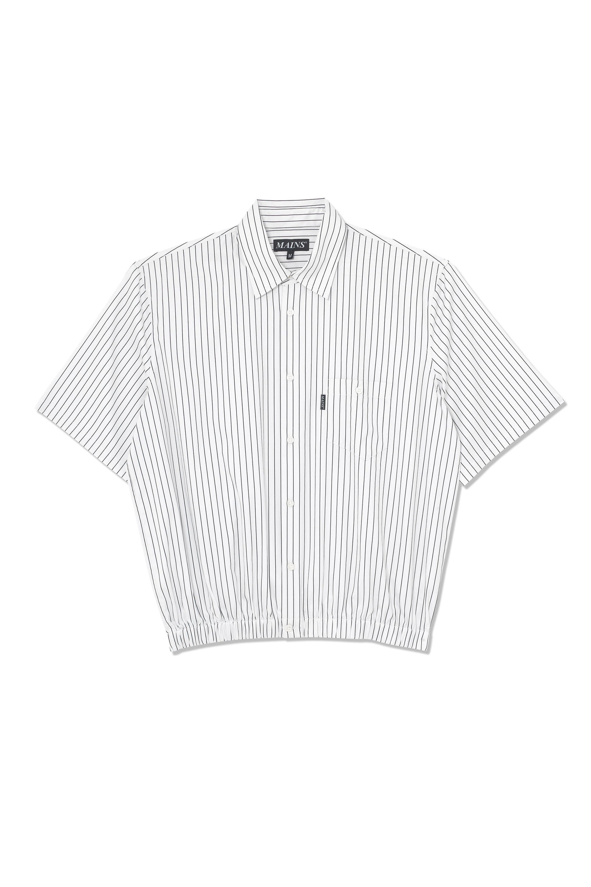 White and Black Pinstripe Short Sleeve Shirt with Elasticated Hem